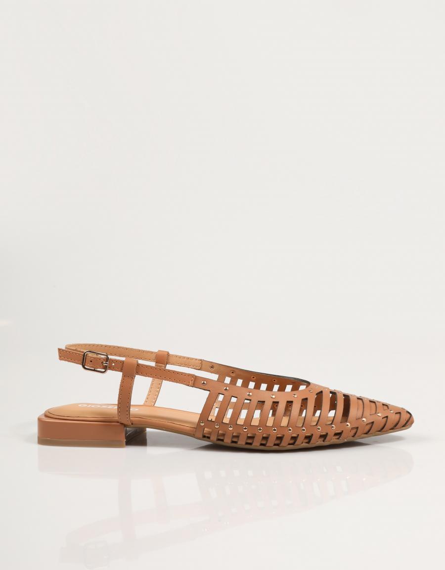 Descubre la elegancia y el estilo de las sandalias destalonadas GIOSEPPO JERICHO. Confeccionadas en piel de alta calidad en un sofisticado tono cuero, estas sandalias presentan una punta afilada y un diseño tejido con finas tiras, perfectas para cualquier ocasión.