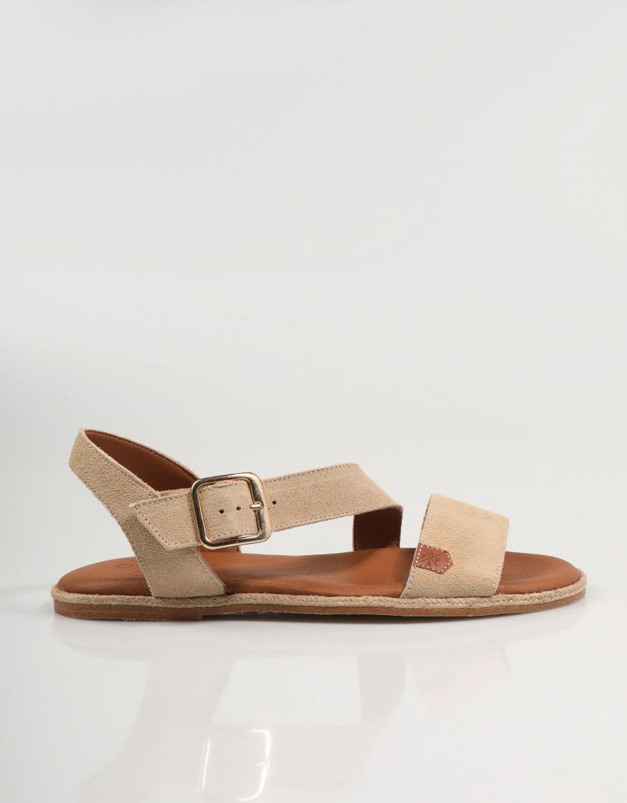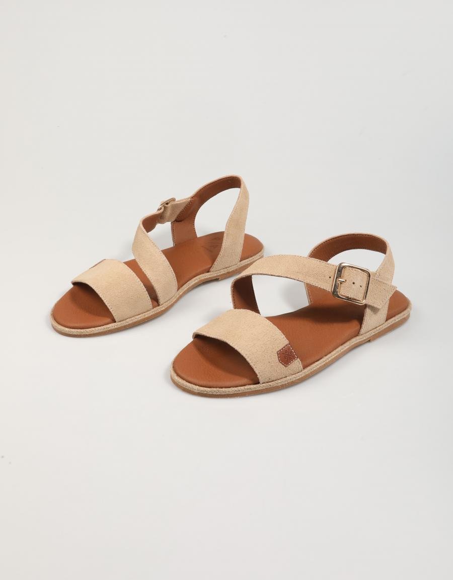 Descubre la comodidad y el estilo natural con las sandalias planas POPA Leyte Serraje. Diseñadas para tus días más cálidos, estas sandalias combinan la suavidad del serraje beige con la autenticidad de la suela de yute, creando un look fresco y versátil.
