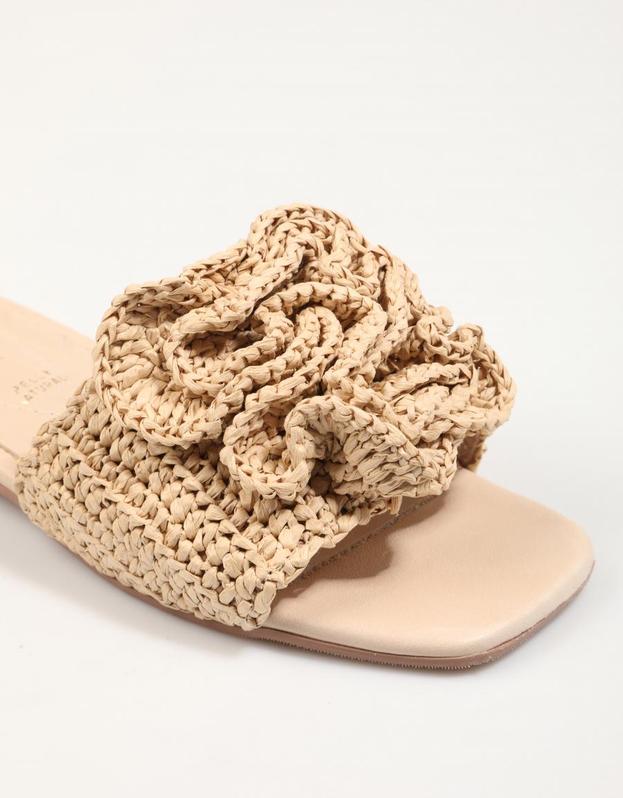 Descubre la esencia del verano con las sandalias planas SHADDY 251456. Confeccionadas en rafia tejida de tono beige, estas sandalias son el complemento perfecto para tus looks más frescos y naturales. Su diseño ligero y su detalle floral en la parte superior aportan un toque de distinción y feminidad.