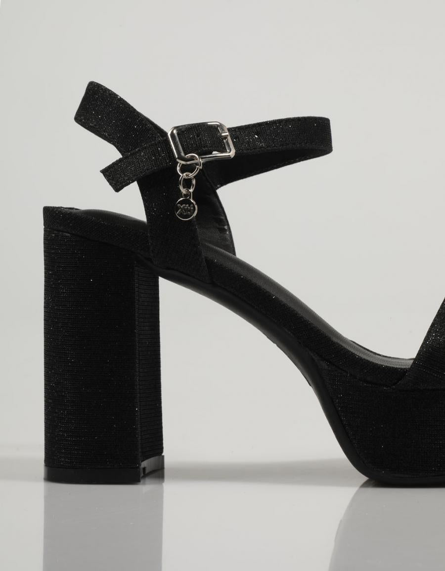 La sandalia de tacón para mujer de la reconocida marca Xti está confeccionada en un lujoso tejido metalizado color negro, ideal para lucir en tus ocasiones más especiales. Cuenta con un cierre de hebilla metálica para un ajuste perfecto. El tacón ancho de 11 cm viene acompañado de una plataforma delantera, brindando comodidad y estilo en cada paso. Además, la suela de goma antideslizante asegura una pisada segura en cualquier superficie. Es importante destacar que este modelo ha obtenido el certificado vegano, lo que garantiza que no contiene materiales de origen animal, en línea con los valores éticos y conscientes de la marca Xti. Con estas sandalias, podrás lucir un look sofisticado y elegante, sin comprometer tus principios éticos.