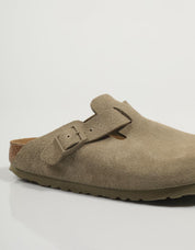 El icónico zueco Boston de BIRKENSTOCK es un clásico atemporal que puede ser usado sin problemas durante todo el año. Con una capa adicional de espuma, su plantilla suave brinda una dosis extra de comodidad y cuidado para los pies durante toda la jornada. El material superior color kaki, confeccionado en ante de máxima suavidad, ofrece un diseño natural que se adapta al pie como una segunda piel, brindando una sensación de confort excepcional.