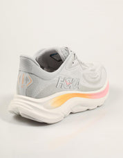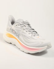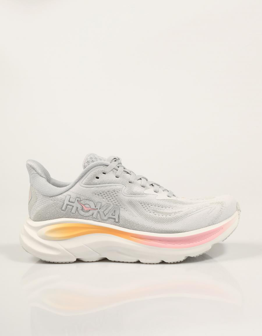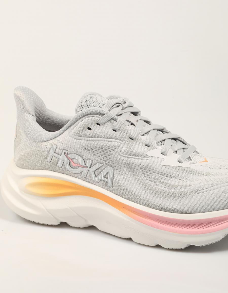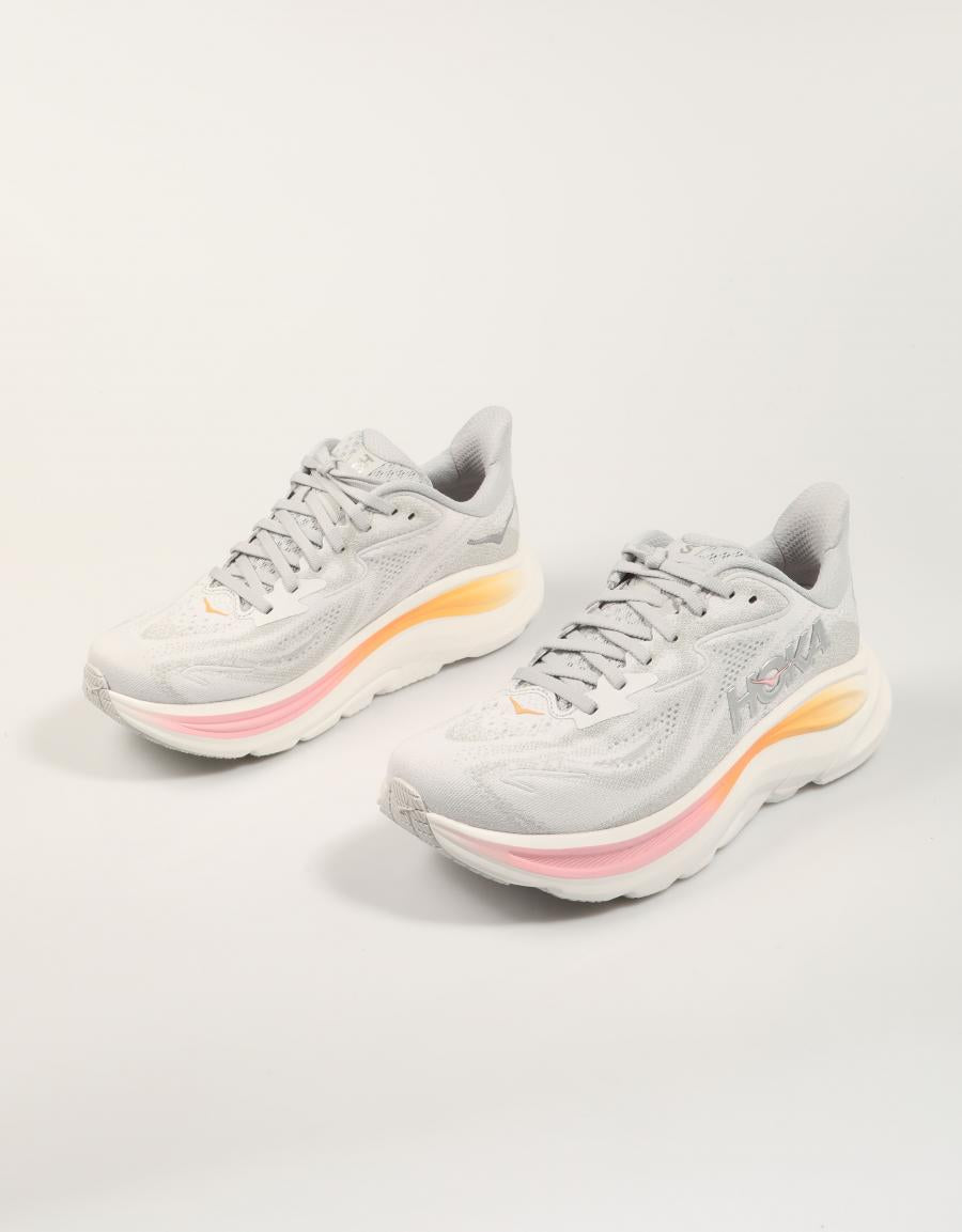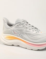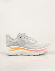 Die HOKA Clifton 10 Sneaker aus grauem Canvas bieten eine perfekte Kombination aus Komfort und modernem Stil.
