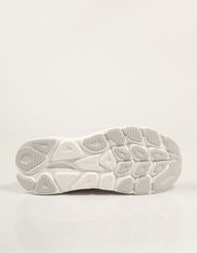 - Markante Sohle: Dicke, weiße Außensohle mit auffälligen orangefarbenen und rosa Streifen.