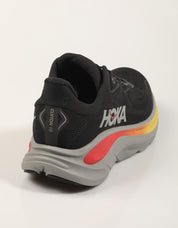 Entdecken Sie die HOKA CLIFTON 10, einen Laufschuh, der für maximale Leistung entwickelt wurde. Sein elegantes Obermaterial aus schwarzem Canvas wird mit einer lebendigen Farbverlauf-Sohle kombiniert und schafft einen einzigartigen Stil für Ihre Läufe.