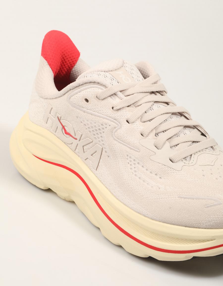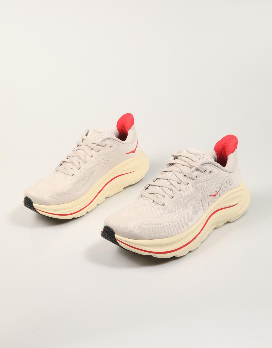- Markante Details: Mit einem geprägten HOKA-Logo im gleichen Farbton und einer praktischen roten Zugschlaufe an der Ferse, die einen kontrastierenden Akzent setzt.