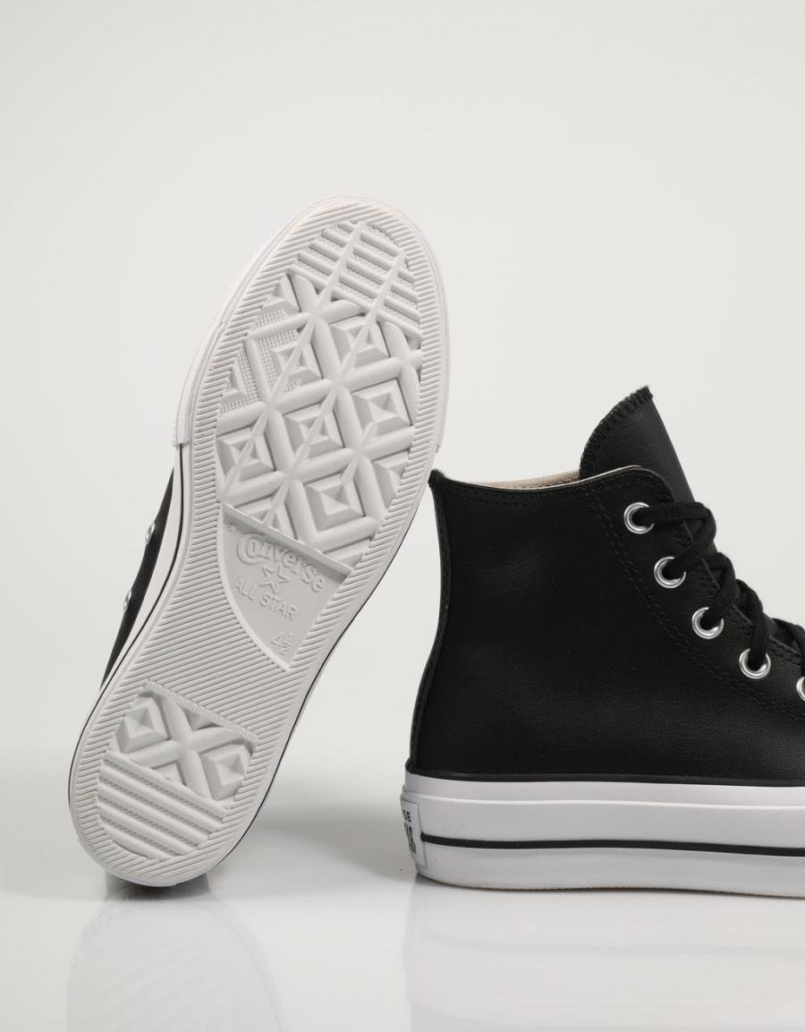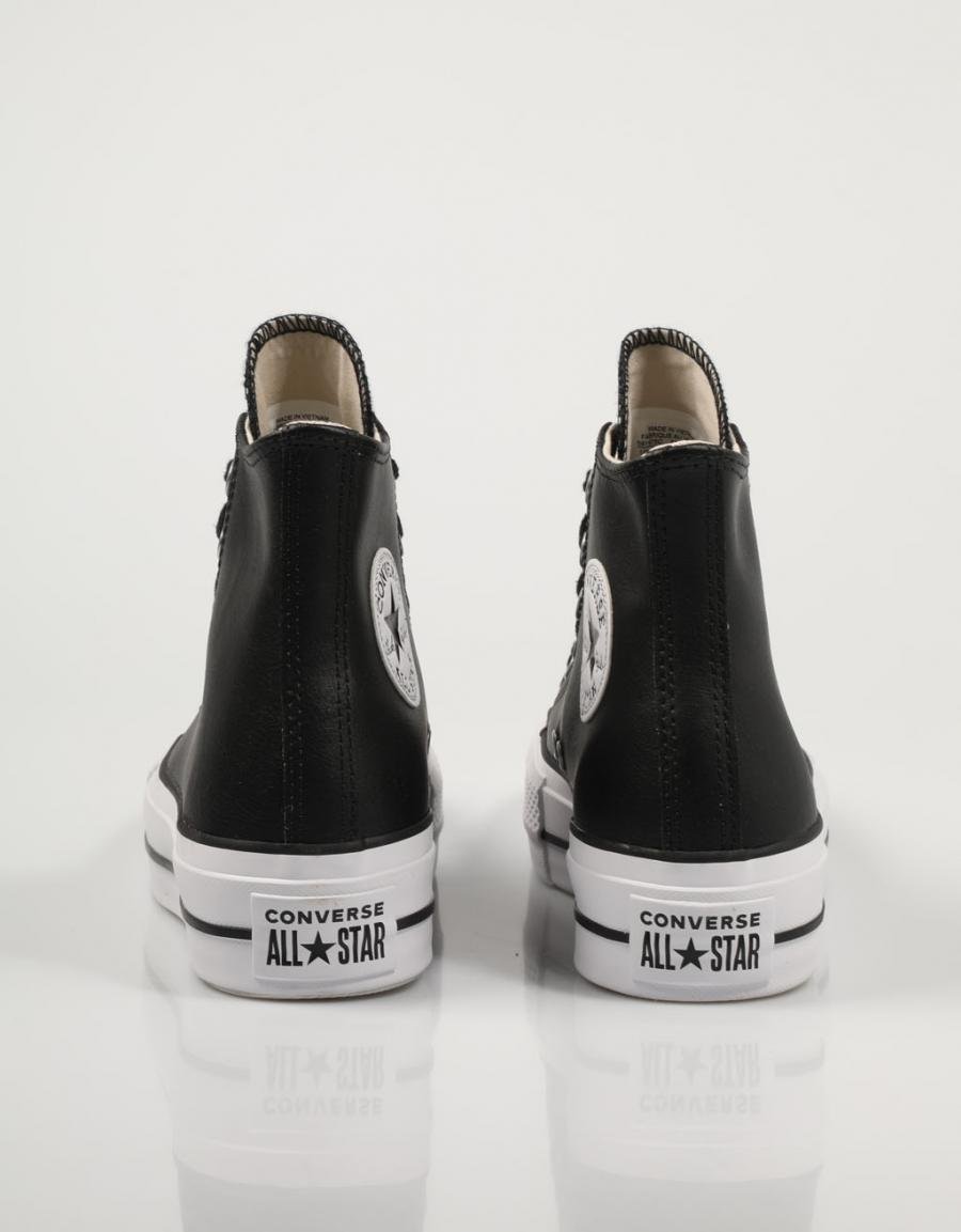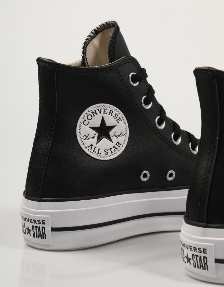 Converse es posiblemente la marca de sneakers más conocida del mundo. En cualquiera de sus múltiples versiones y colores las Converse All Star son un básico que no puede faltar en tu armario. Perfectamente combinables con todos los estilos, darán a tu look un toque retro, esencial en el movimiento sneaker. Se suma a la moda de las plataformas con este diseño de botín en color negro fabricado en piel, manteniéndose fiel a la marca.