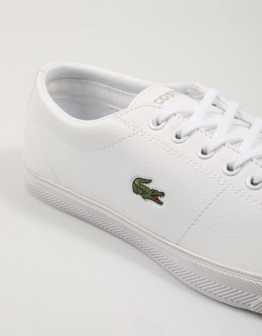 Te presentamos un básico imprescindible en tu armario. Esta zapatilla casual de Lacoste, está fabricada en piel sintética de color blanco. En su diseño cabe destacar en el lateral de ésta, el logo del cocodrilo que tanto caracteriza a la marca. Un modelo que te lo podrás poner con todas tus prendas ¡Sácale el máximo partido!