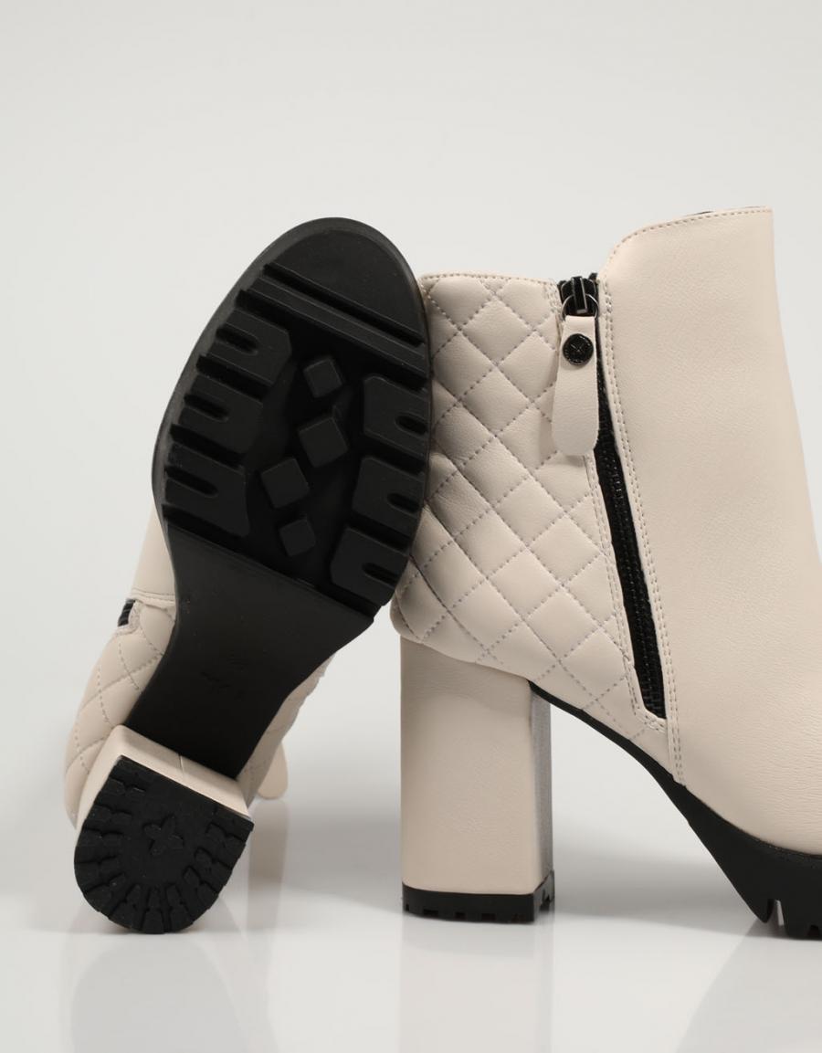 Lo que se lleva esta temporada es estar por todo lo alto y qué mejor que con estos botines de la marca XTI en color hielo. Están fabricados con piel sintética y diferentes texturas como el acolchado de la parte trasera. Combina una suela de goma negra antideslizante. Un producto vegano para disfrutarlo en cualquier ocasión ¿ Qué te parecen?