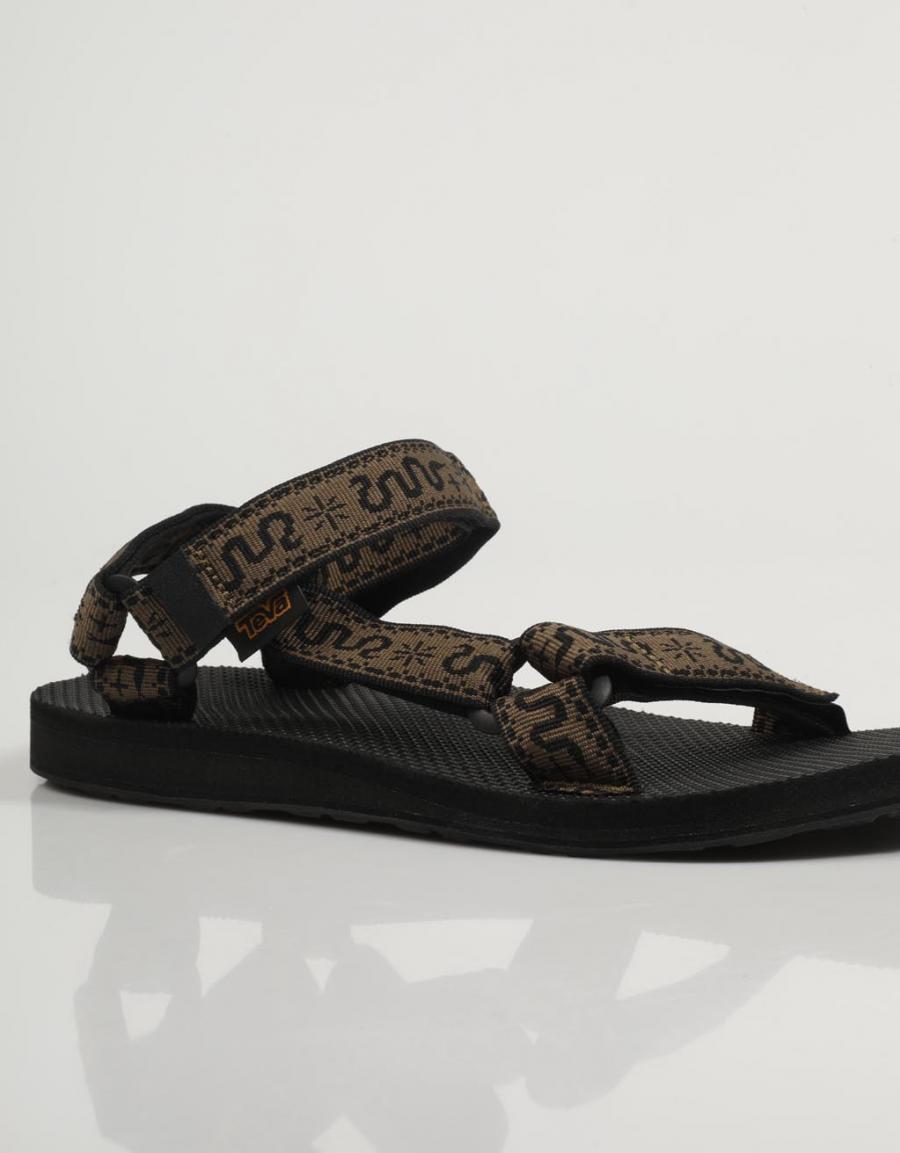 Teva es una marca que fabrica desde el año 1984 y que se caracteriza por su comodidad total y su toque en tendencia. Su nuevo modelo de sandalia deportiva Teva Original Universal, en un tono kaki con estampado étnico, es el modelo perfecto para todos tus outfits. Confeccionada con materiales reciclados y un cierre en velcro, que te aportará mayor sujeción. Su suela de goma Eva, es totalmente ligera y confortable. ¡No te quedes sin las tuyas!