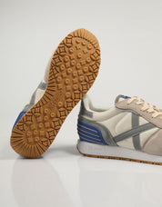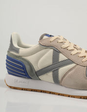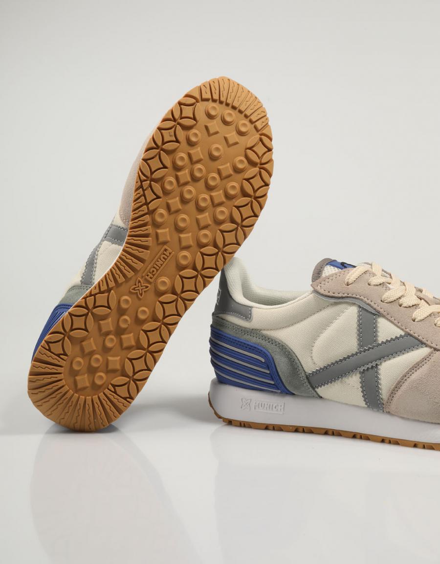 Este modelo Massana de Múnich está inspirado en las zapatillas que usaba el atleta Valentí Massana. Una sneaker en color beige y detalles en azul, de estilo retro fabricada en diferentes texturas como la piel y el textil. Además, tiene una mayor transpirabilidad gracias a su rejilla . Un producto elegante y estiloso, icono en la colección de moda.