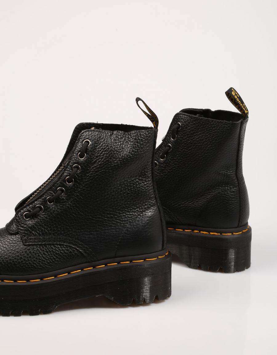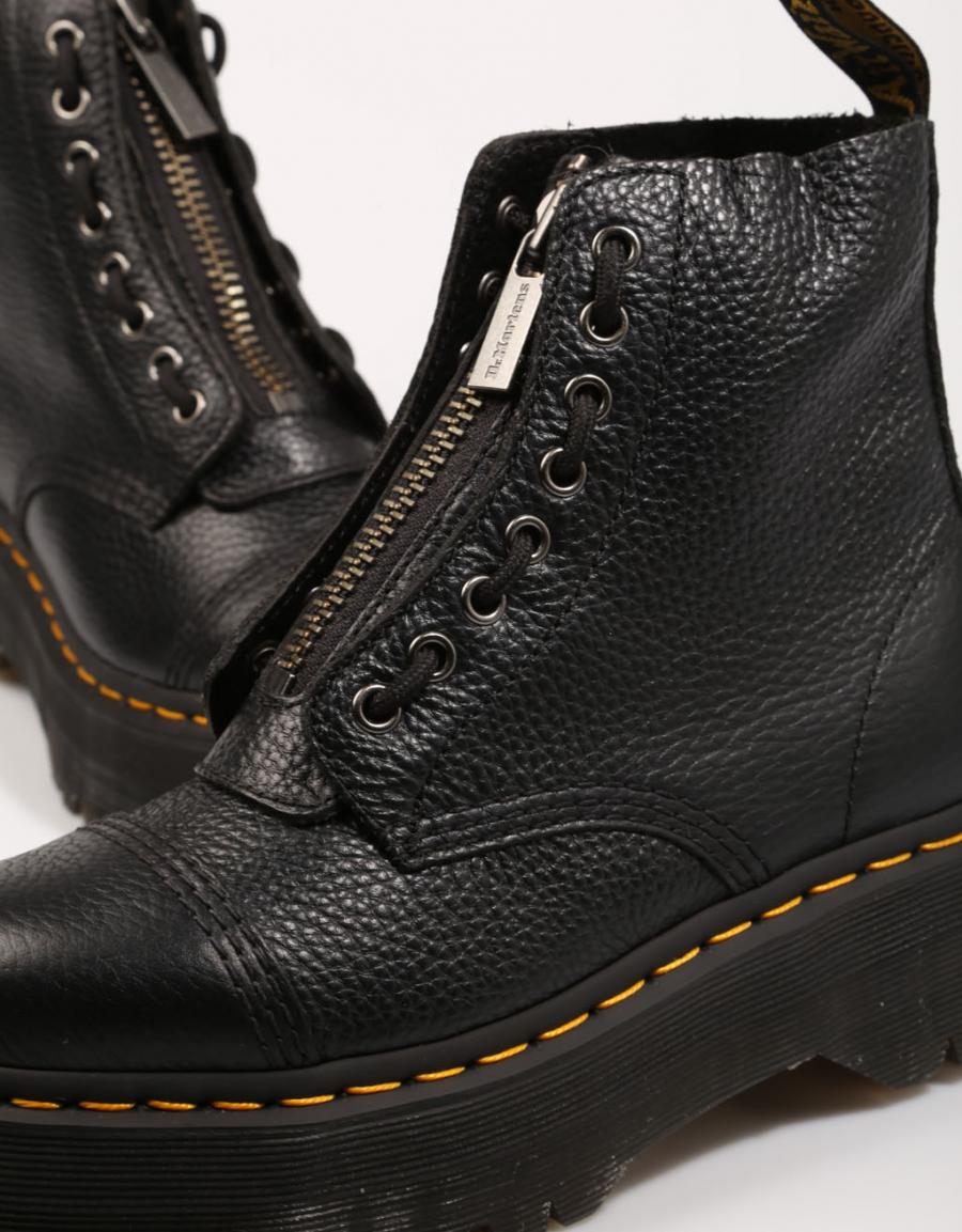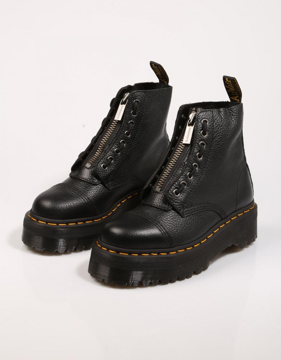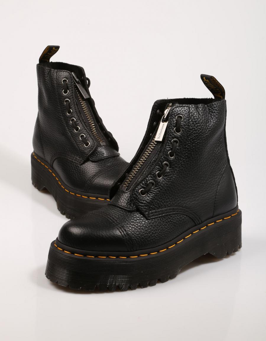 Dr. Martens, no sólo son estilo y tendencia, si no que al ponértelas te sientes más tú que nunca, te hacen sentir que puedes con todo, son un símbolo de autoexpresión, personalidad y juventud. Son un distintivo de rebeldía y de expresión pura. Con estas botas de alta calidad sentirás absoluta libertad. La marca se suma a la tendencia de la plataforma. Este modelo en color negro está fabricado en piel con cremallera central y pespunte amarillo tan significativo de la marca ¡Brutales!
