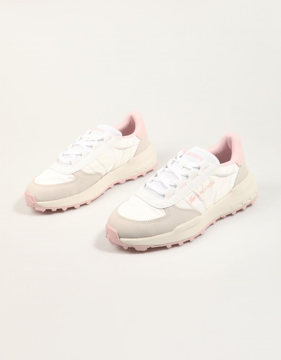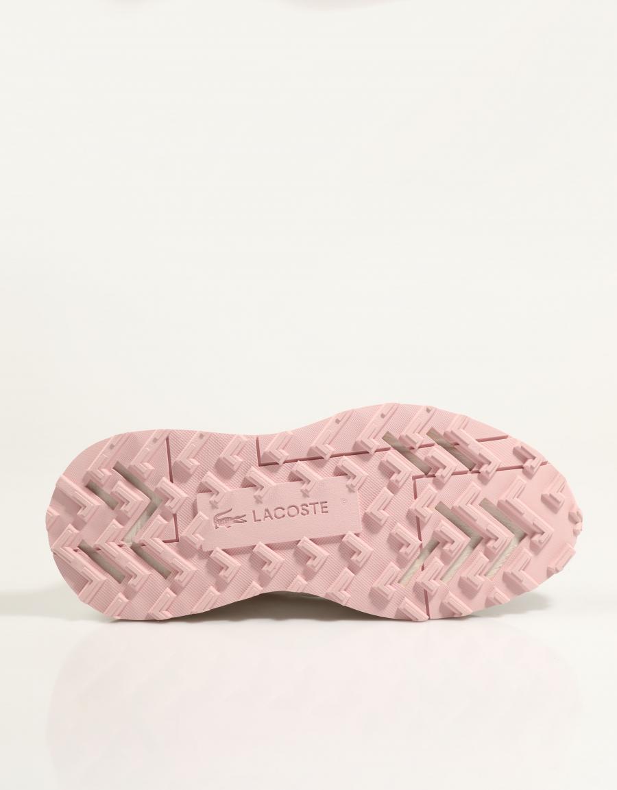 • Logo Lacoste distinctif en rose pâle sur le côté.