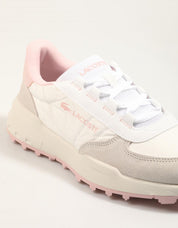Les baskets Lacoste Elite Actv Evo 225 4 SFA pour femme allient style sportif et confort. Dotées d'une tige combinant du nylon rembourré et du daim dans des tons crème, avec des touches de rose au talon et sur la semelle, ces baskets sont idéales pour un look décontracté et moderne.