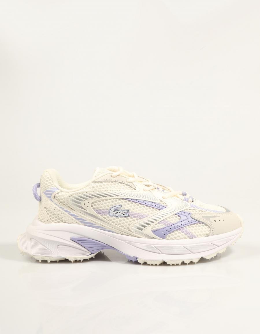 Les baskets LACOSTE L003 Neo Shot 225 3 SFA se déclinent dans un élégant ton blanc cassé avec des touches de lilas et d'argent. Conçues pour un style moderne et un confort quotidien, elles associent une tige en maille respirante à des renforts stratégiques en cuir synthétique.