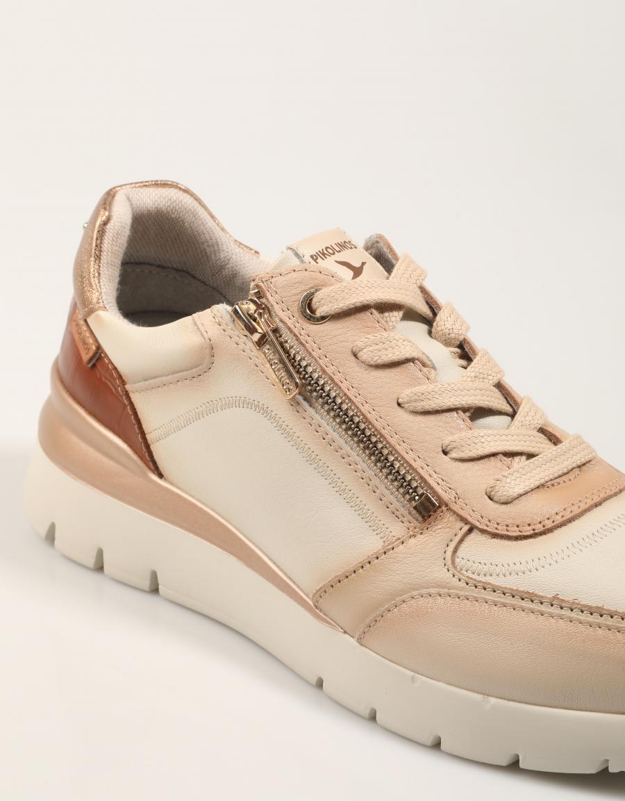 Découvrez les baskets en cuir Pikolinos Cantabria couleur Hielo, un design polyvalent qui allie style et confort pour votre quotidien. Avec des détails cognac et dorés.