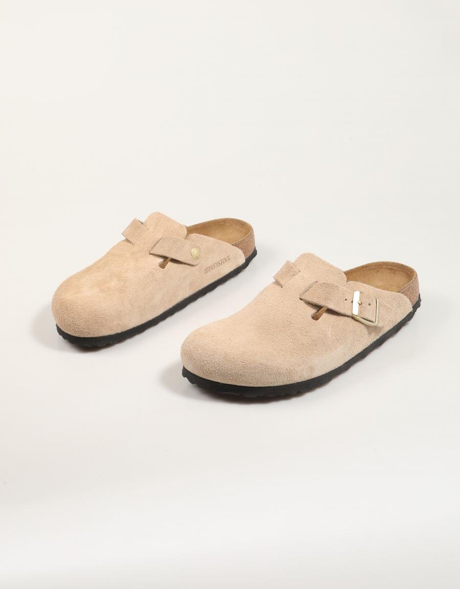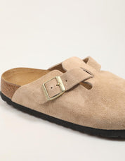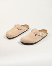 Les sabots BIRKENSTOCK Boston Leve en daim beige sont une réinterprétation légère et confortable d'un classique. Alliant un style intemporel au confort réputé de BIRKENSTOCK, ils sont parfaits pour toutes les occasions.