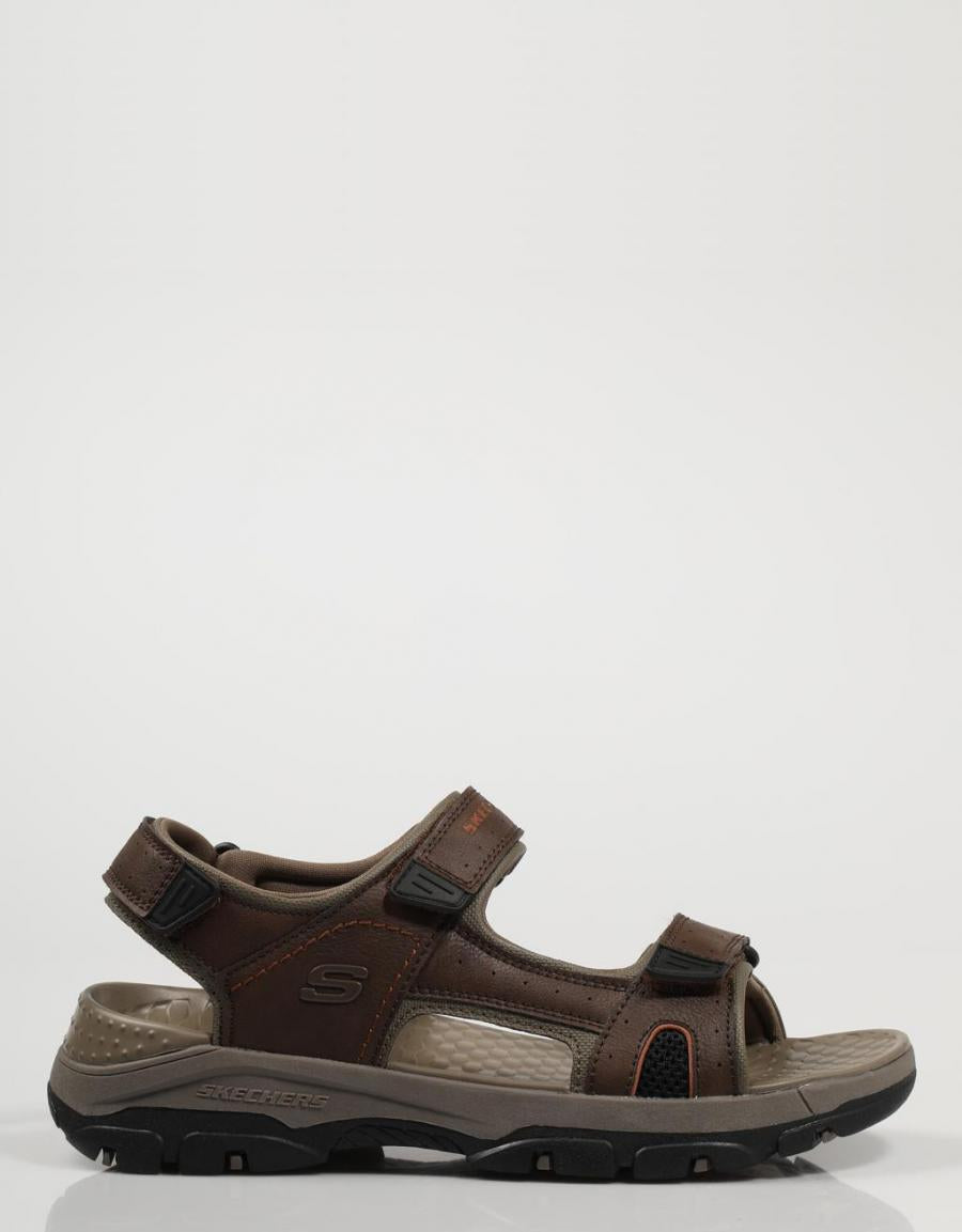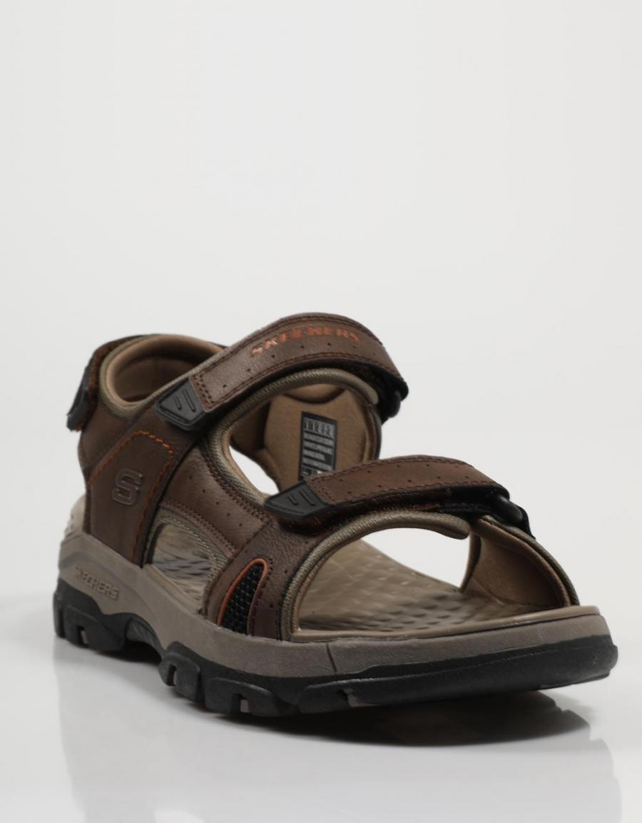 Cómoda sandalia Relaxed Fit de Skechers .Su plantilla Luxe Foam ofrece una gran amortiguación. Tiene unas tiras con cierre en velcro para un ajuste personalizado. Detalle del logo de la marca en el lateral. Su color marrón es idóneo para combinarla. Disfrútalas en un ruta de senderismo o para tu rutina diaria. ¡La opción perfecta!