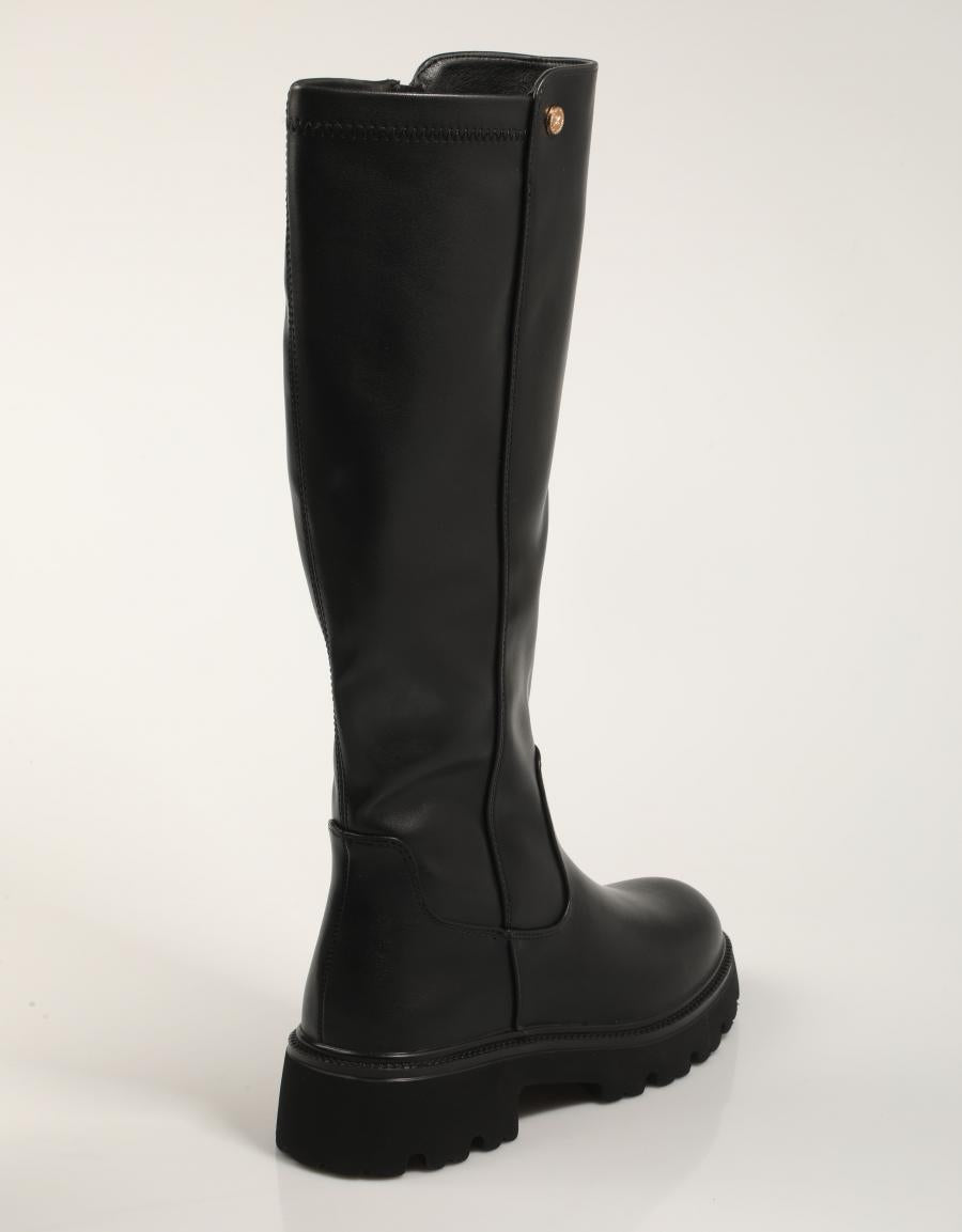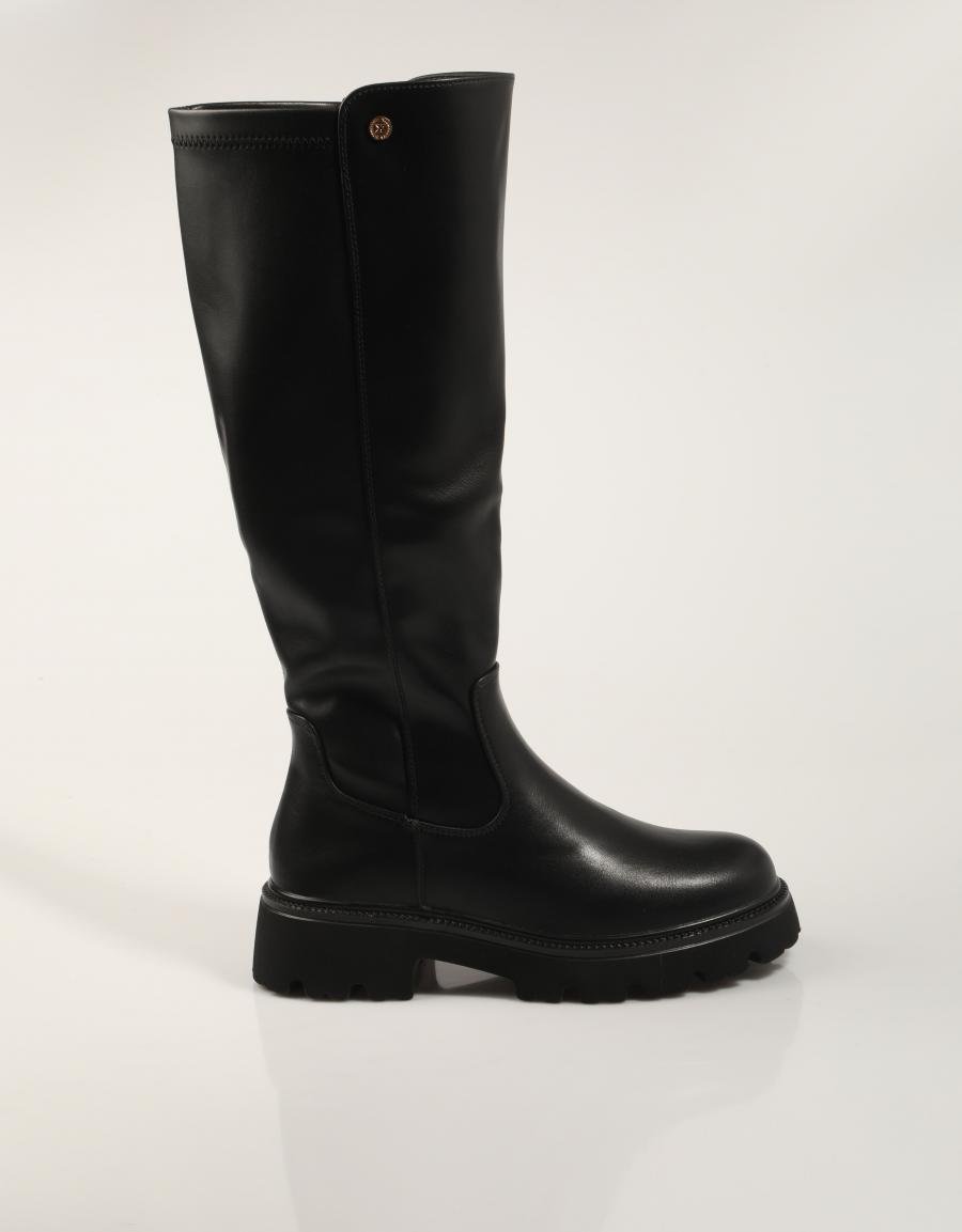 Découvrez les bottes hautes XTI 144419 en similicuir noir, une chaussure qui allie modernité et robustesse. Idéales pour compléter vos tenues urbaines avec une touche sophistiquée et contemporaine.