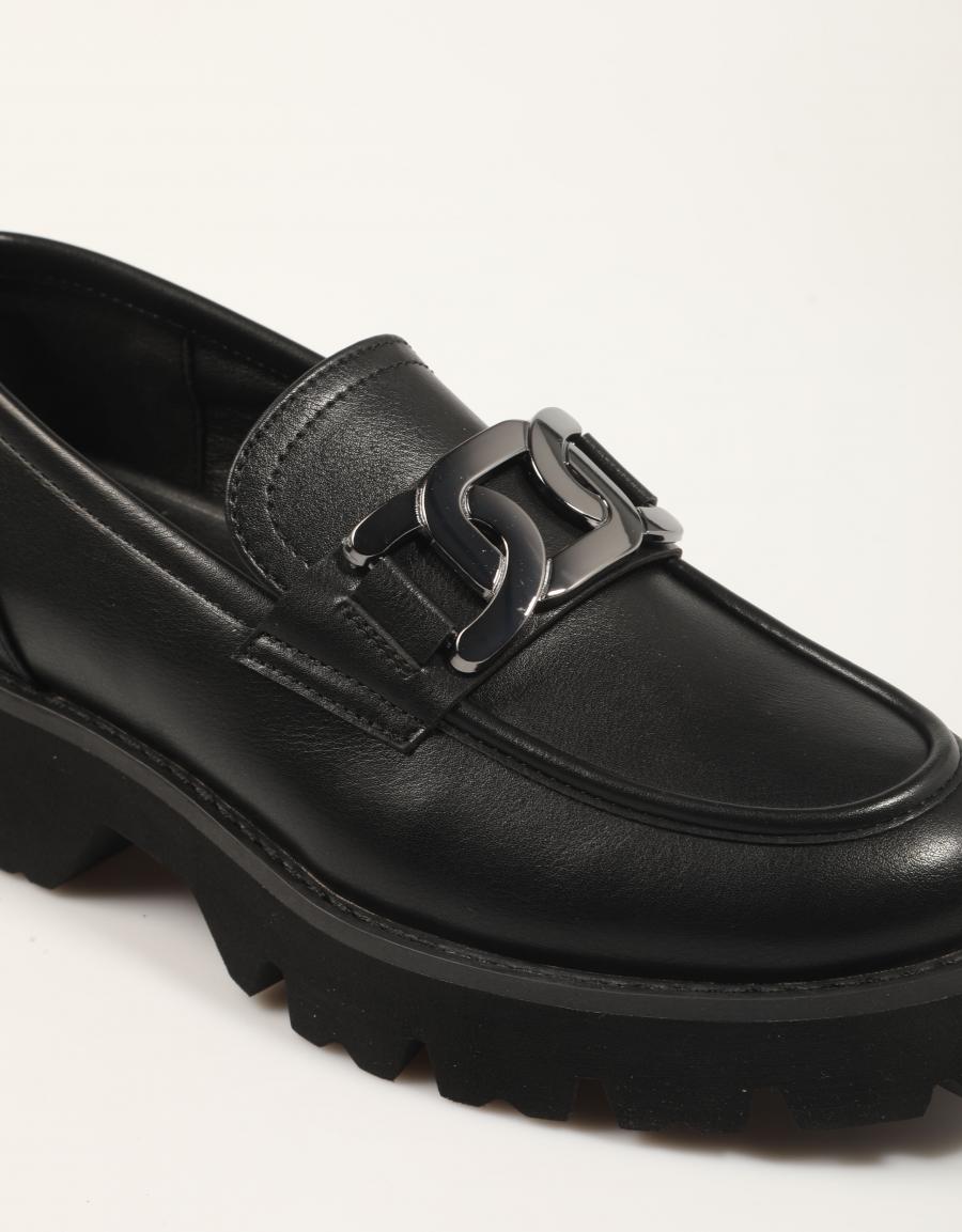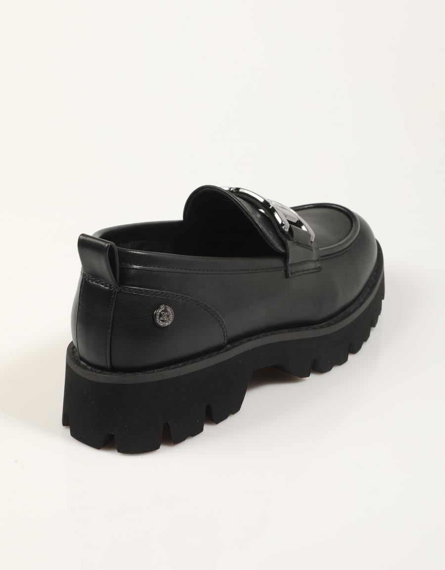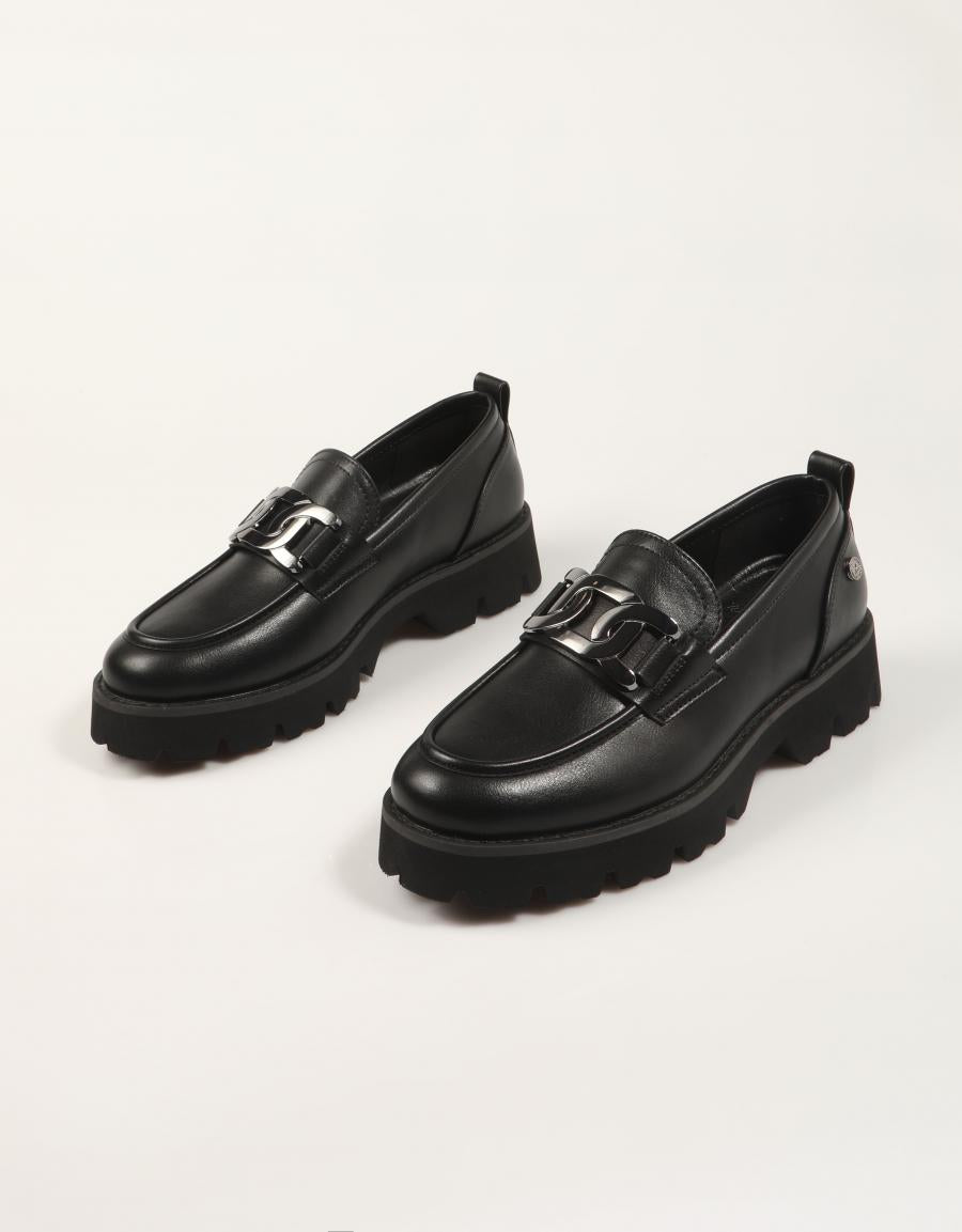 Découvrez les mocassins XTI 144678, un modèle incontournable qui allie style classique et touche moderne. Fabriquées en similicuir noir de haute qualité, ces chaussures présentent une semelle épaisse et crantée qui apporte caractère et confort à chaque pas. Le détail de la boucle métallique argentée sur le devant ajoute une touche distinctive, parfaite pour rehausser n'importe quelle tenue.
