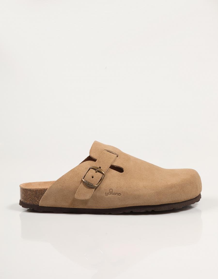 Scopri il comfort e lo stile naturale con lo zoccolo YOKONO 87912. Realizzato in morbido camoscio beige e dotato di una suola in sughero e gomma, questo modello è perfetto per i tuoi outfit primaverili ed estivi.