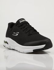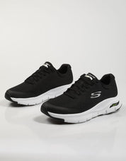 Tus pies agradecerán que lleves esta zapatilla en negro de Skechers. Una zapatilla compuesta por una malla de textil y refuerzo en su puntera. Logo de la marca en el lateral y un sistema de plantilla Arch Fit diseñada por podólogos, que aporta confort y una ligera amortiguación en cada pisada. Disfruta tus inolvidables momentos con Skechers.
