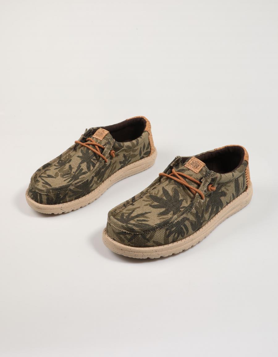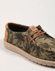 Scopri il comfort e lo stile casual con le scarpe sportive DUDE Wally Palm Jute. Realizzate in tela color kaki con una distintiva stampa mimetica, queste slip-on sono perfette per il tuo look quotidiano. Il loro design leggero e la suola flessibile ti garantiscono una calzata confortevole e un aspetto rilassato.