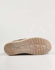 • Suola esterna: Suola in gomma beige leggera e flessibile con texture maculata per una migliore aderenza.