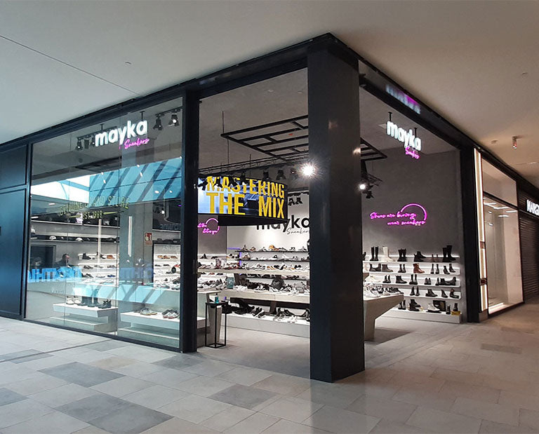 En 2021 nuestra tienda de zapatillas de marca llamada Mayka Sneakers abre a la par que se inaugura el centro comercial Vialia en Vigo. Se trata de una tienda especializada en la venta de zapatillas de marca. Podrás hallarla en una ubicación privilegiada en la segunda planta del centro comercial Viala frente a las escaleras mecánicas de acceso y salida del mismo. Mayka Sneakers destaca del resto de tiendas por la espectacularidad de su puesta en escena. De entrada llama la atnnción la enorme pantalla led circular de más de 3 metros de diámetro y desde donde podrás vre los principales spot publicitarios de nuestras zapatillass de marca, y la enorme mesa central de más de 7 metros de profundidad que permite albergar y lucir la gran variedad de modelos y colorido de las increíbles zapatillas de marca que podrás encontrar en Mayka Sneakers. Contamos además con un equipo humano muy formado que te ayudará en todo momento a elegir la zapatillas más adecuada para ti. Si estás buscando los últimos modelos de marcas internacionales consolidadas como Nike, Converse, Vans, New Balance, Adidas o por contrario estás buscando nuevas marcas como Morrison, Pompeii, Mim, Scalpers muy activas en Redes Sociales como Instagram, no lo dudes Mayka Sneakers es la tienda de zapatillas de Vigo que debes visitar. ¡Te esperamos!