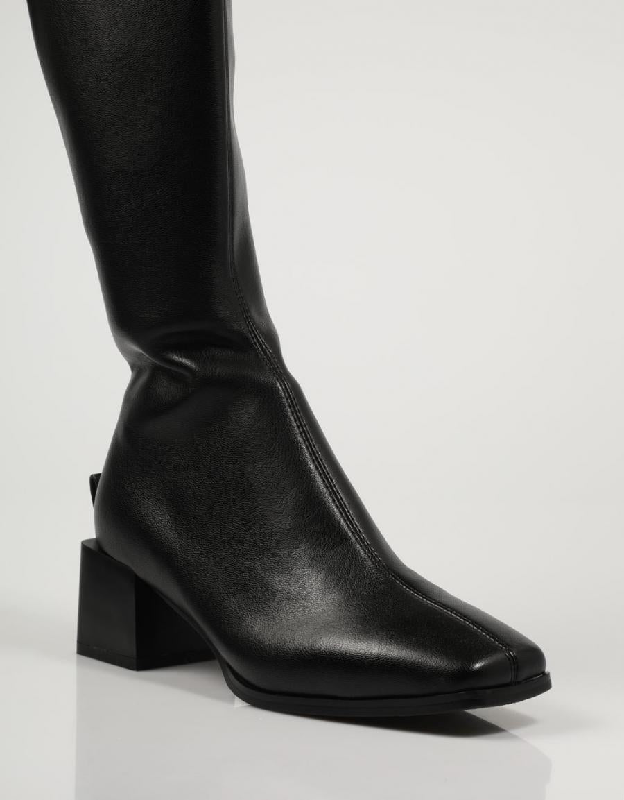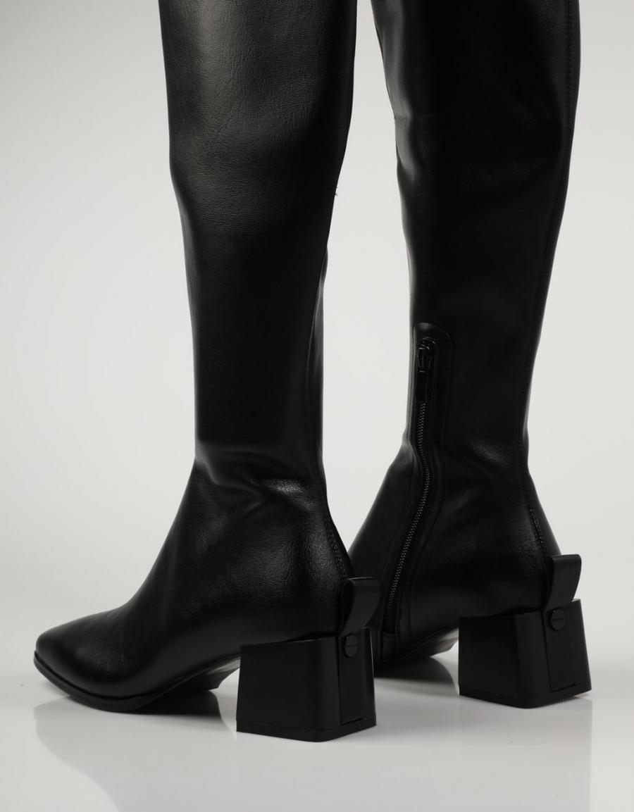 Noa Harmon é uma marca de designs criativos que assume riscos a cada temporada. Na Mayka Shoes trazemos novidades e tendências, com estas botas pretas em imitação de pele. É super confortável graças ao salto de 6 cm. Eles ficarão espetaculares em você com qualquer roupa. Saia e conquiste o mundo! Possui alça traseira e haste de aproximadamente 60 cm.