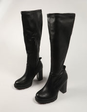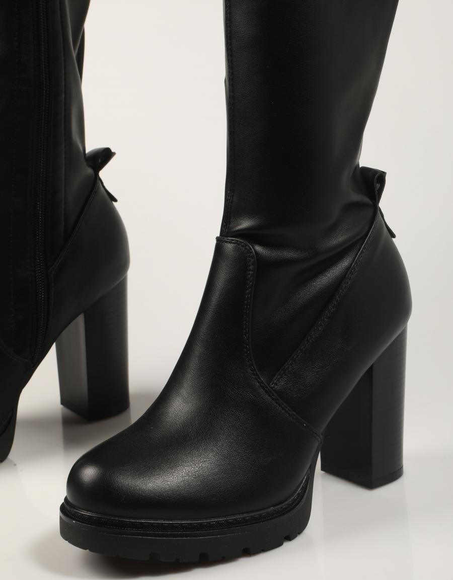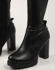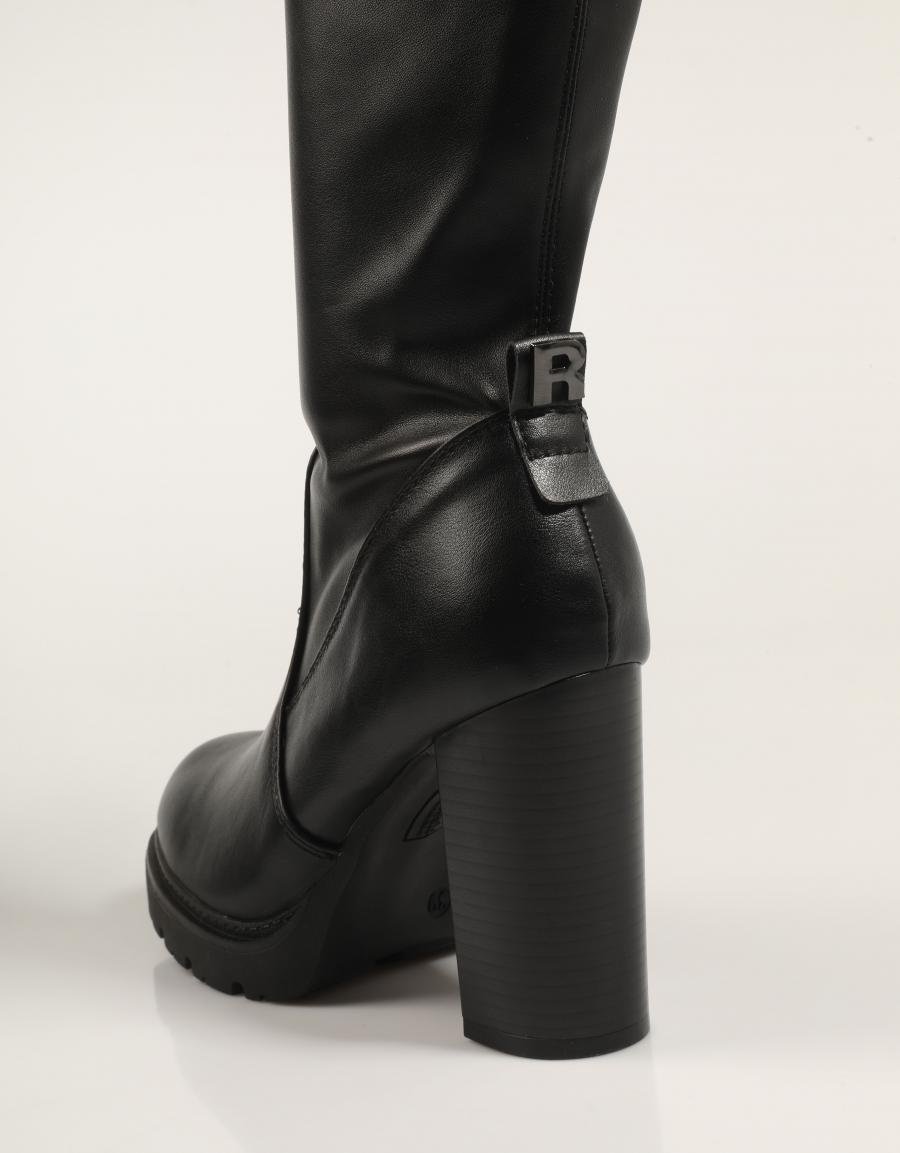 Descubra as botas REFRESH 172924, um design arrojado e contemporâneo, confecionado em pele sintética preta de alta qualidade. Estas botas altas são a escolha perfeita para quem procura combinar estilo e conforto, graças ao seu imponente salto grosso e à robusta sola plataforma.