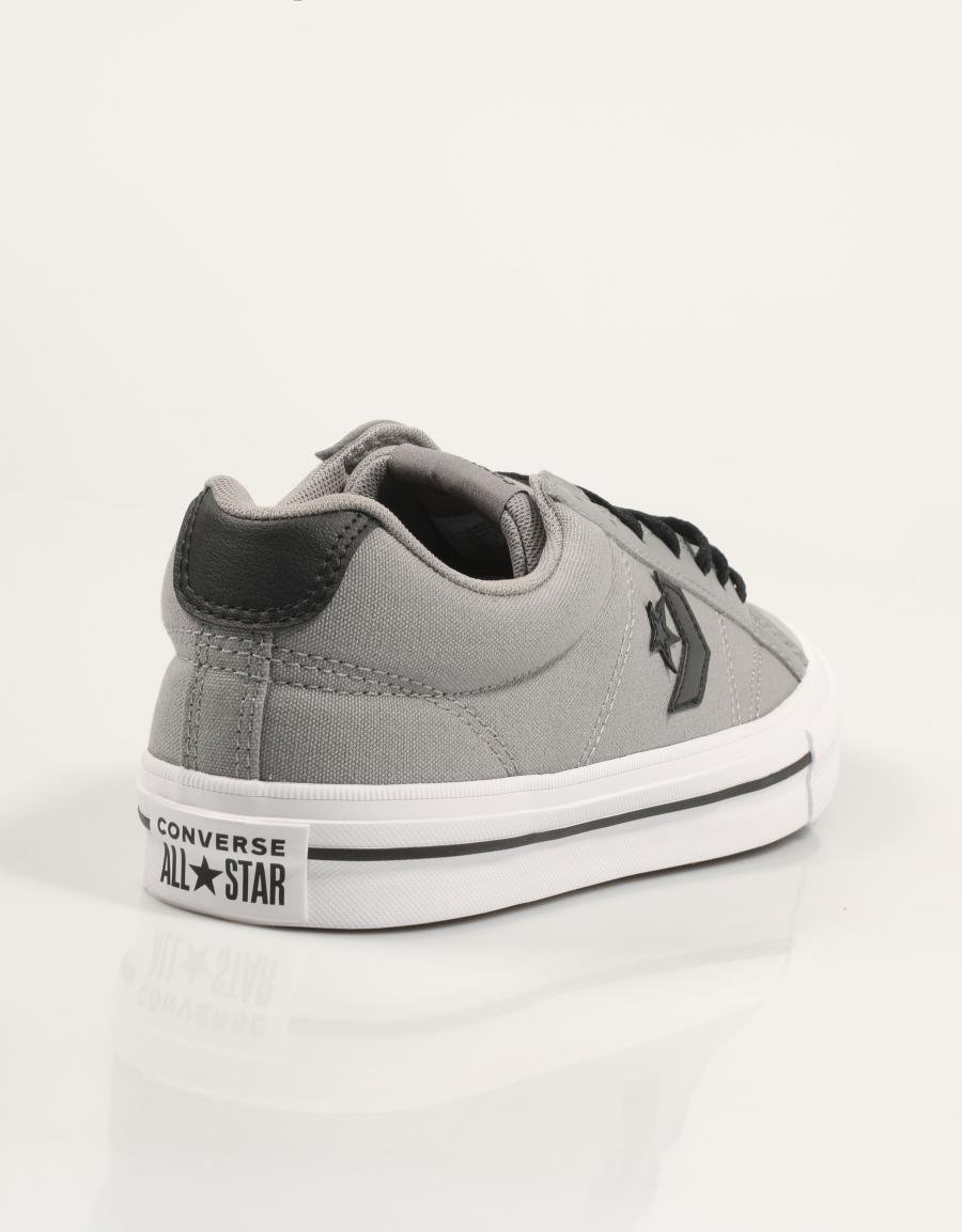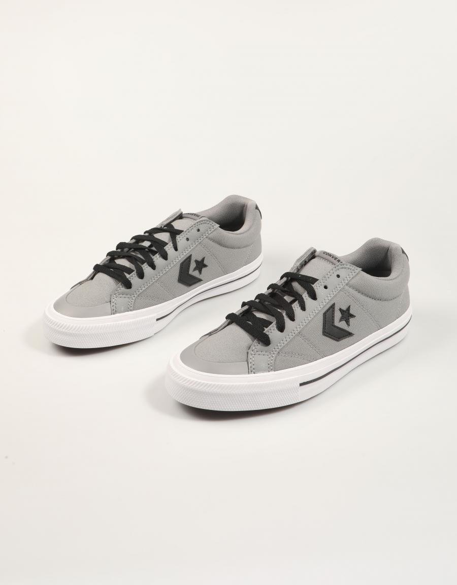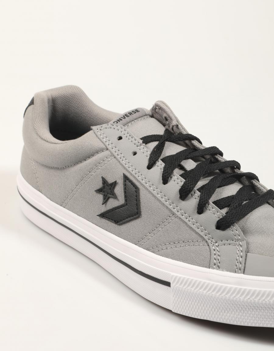Os ténis CONVERSE SPORT CASUAL de lona cinzenta combinam estilo icónico com conforto diário. O seu design de corte baixo, realçado pelo distinto logótipo de estrela e seta em preto, torna-os um essencial versátil para qualquer guarda-roupa.