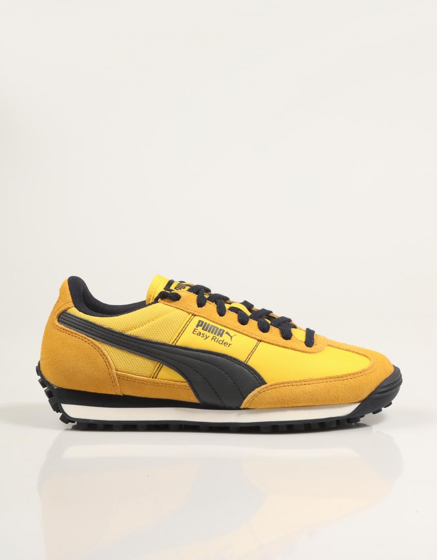 Descubra os PUMA Easy Rider 88707, uns ténis desportivos que combinam estilo retro com conforto moderno. Desenhados para se destacarem, estes ténis em amarelo vibrante com detalhes em preto são perfeitos para o seu dia a dia.