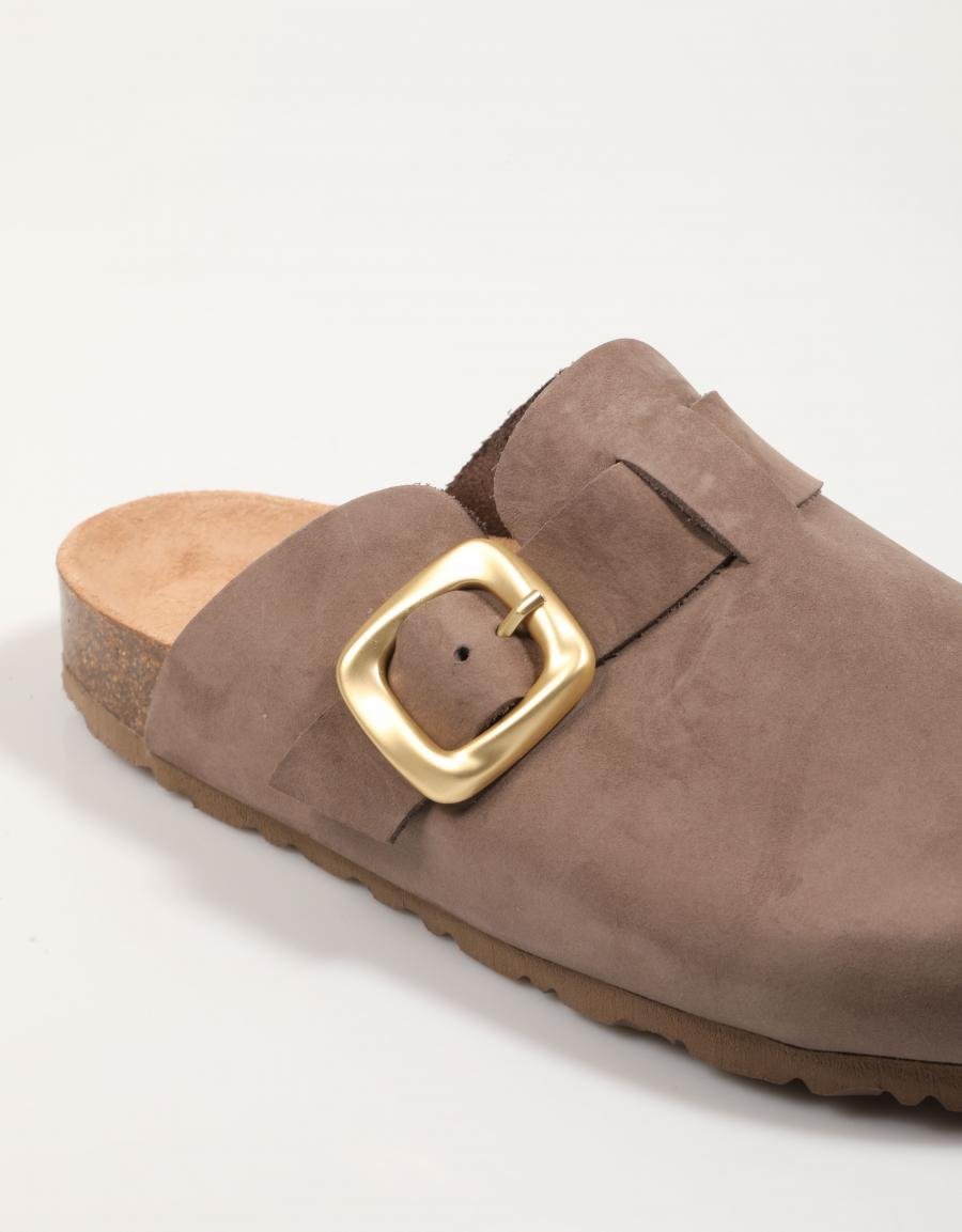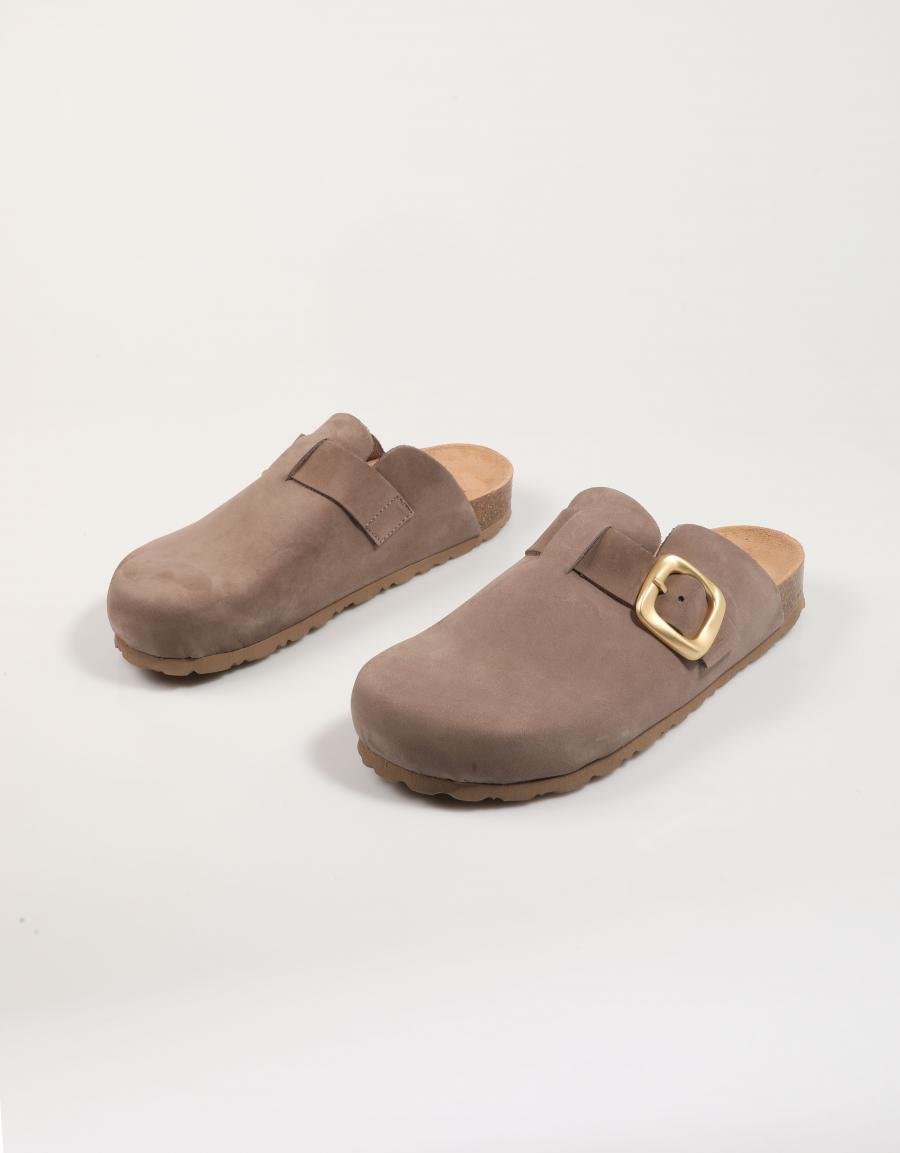 Descubra o conforto e o estilo com os tamancos YOKONO 650. Confeccionados em pele de tom taupe, estes tamancos são o complemento perfeito para os seus looks de verão.